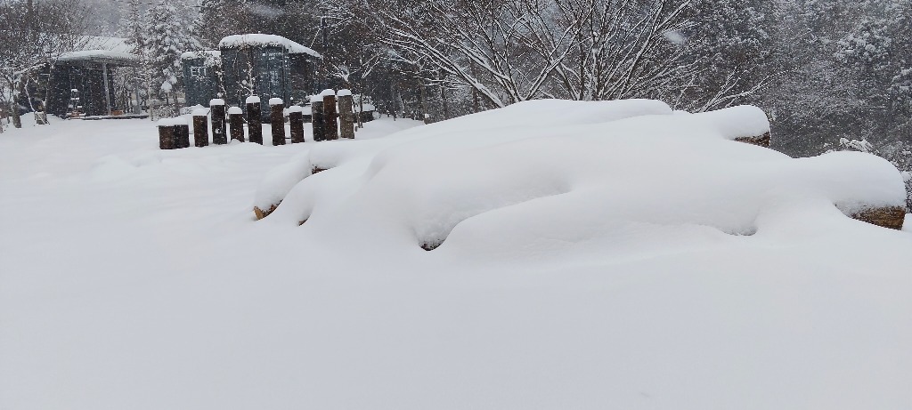 今年は積雪が少ないと安心していましたが、今回の寒波で道路は通行止が二日続いています。ここ東近江市の奥永源寺にあるpizzeria魚幸商店キャンプ場は三重県との県境にあって、東近江市として表記される気温より5℃近く低いのが日常です。夏は気温が低くクーラーが活躍することは滅多にありません。しかし、冬は寒さが厳しいです。外の水道は凍結するので元栓を止めておかないと水道管破裂に繋がります。キャンプ場に併設されているピザ店は何年か前に元栓を閉め忘れたために店内の水道管が破裂したことがあります。積雪のために一週間ぶりに様子を見に行ったらドアを開けた瞬間にプールのごとく店内に貯まった水が溢れてきたことがあります。今年はメンテナンス作業も進んでいましたが、この積雪で当分キャンプ場には近づくことができません。薪づくりもしばしお休みになります。