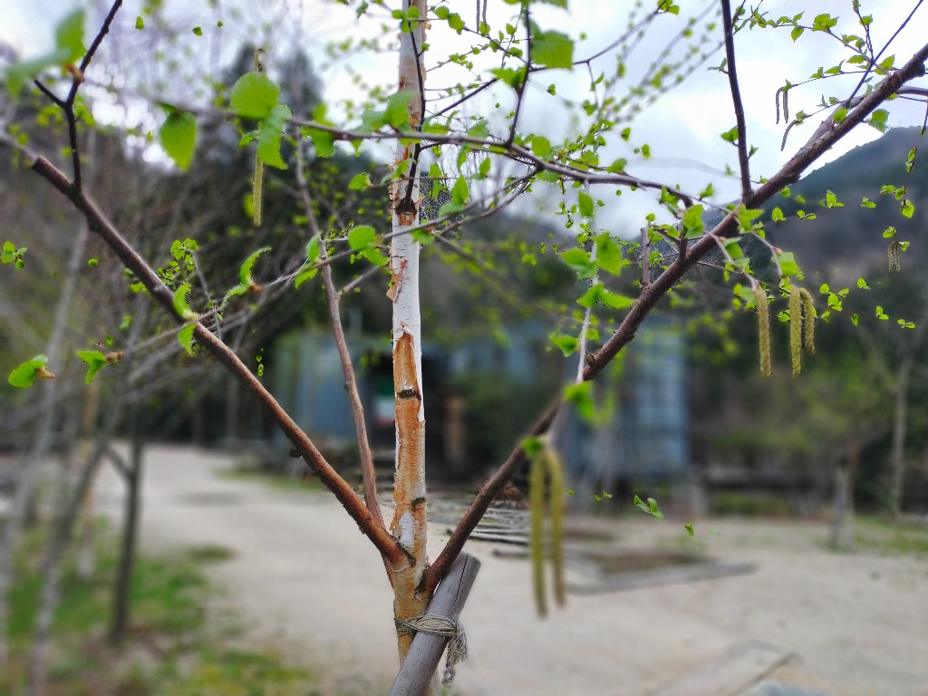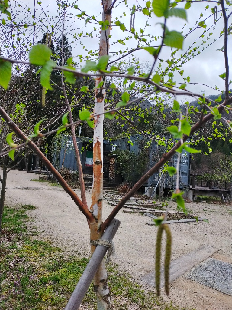 2年前に岐阜県高山から苗木を譲ってもらい、デリカの後部座席を倒して積んできた白樺の苗木が大きく成長して、しっかり根付いてくれました。pizzeria魚幸商店の入り口は随分放ったらかしていましたので、近くを通った人は、ここのコンテナハウスはいったいナニ?って思っておられたことと思います。東近江市奥永源寺渓流の里の横に位置するキャンプ場は目立ってわかりやすいと思っていましたが、初めて来店されるお客様は一同に意外と気が付かなかったとおっしゃいます。キャンプ場の前を通ると、コンテナハウスが見え、ピザ店やキャンプ場に続くアプローチの入り口には枕木で目立つようにしましたので分かりやすくなったと思います。そのアプローチに沿って白樺の木も芽吹いてお客様を案内してくれることと思います。