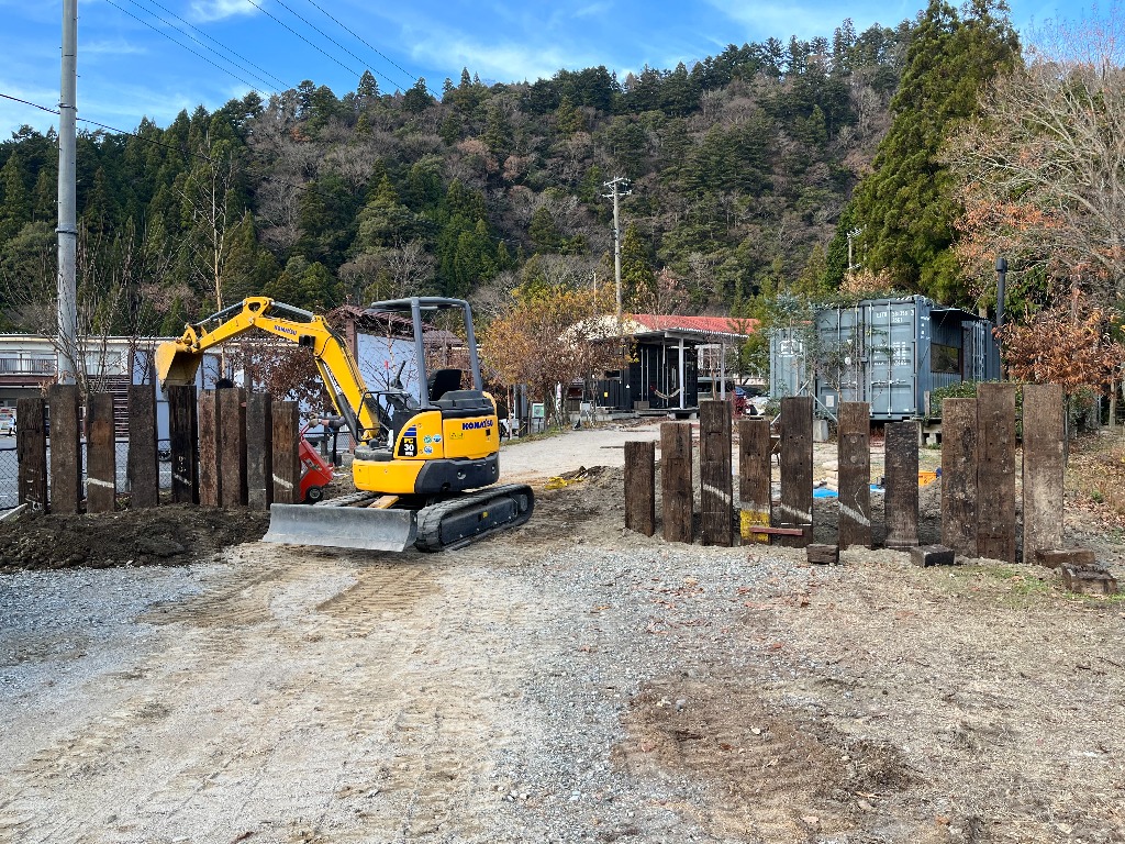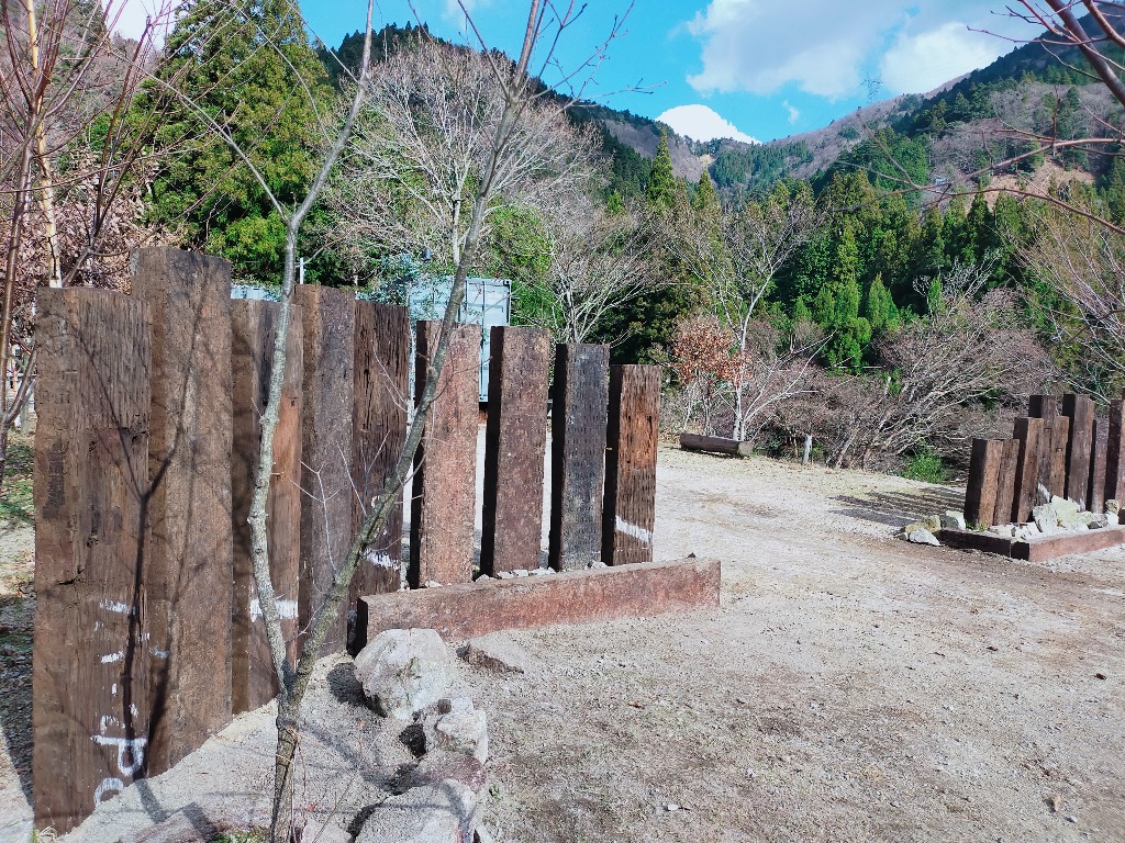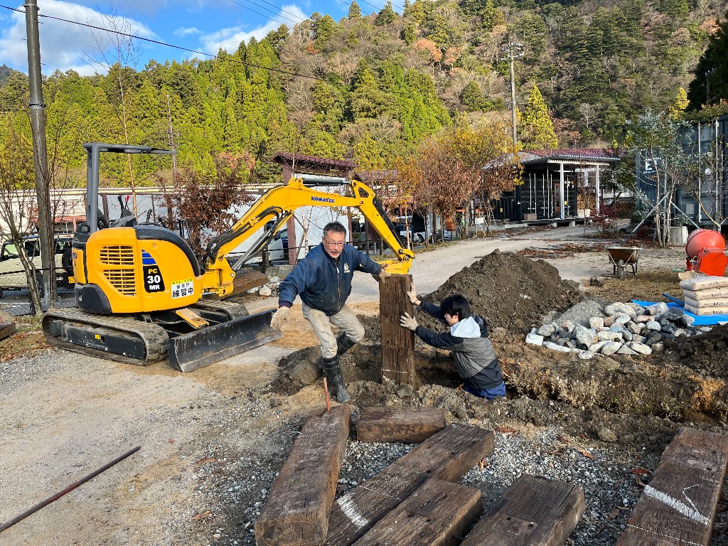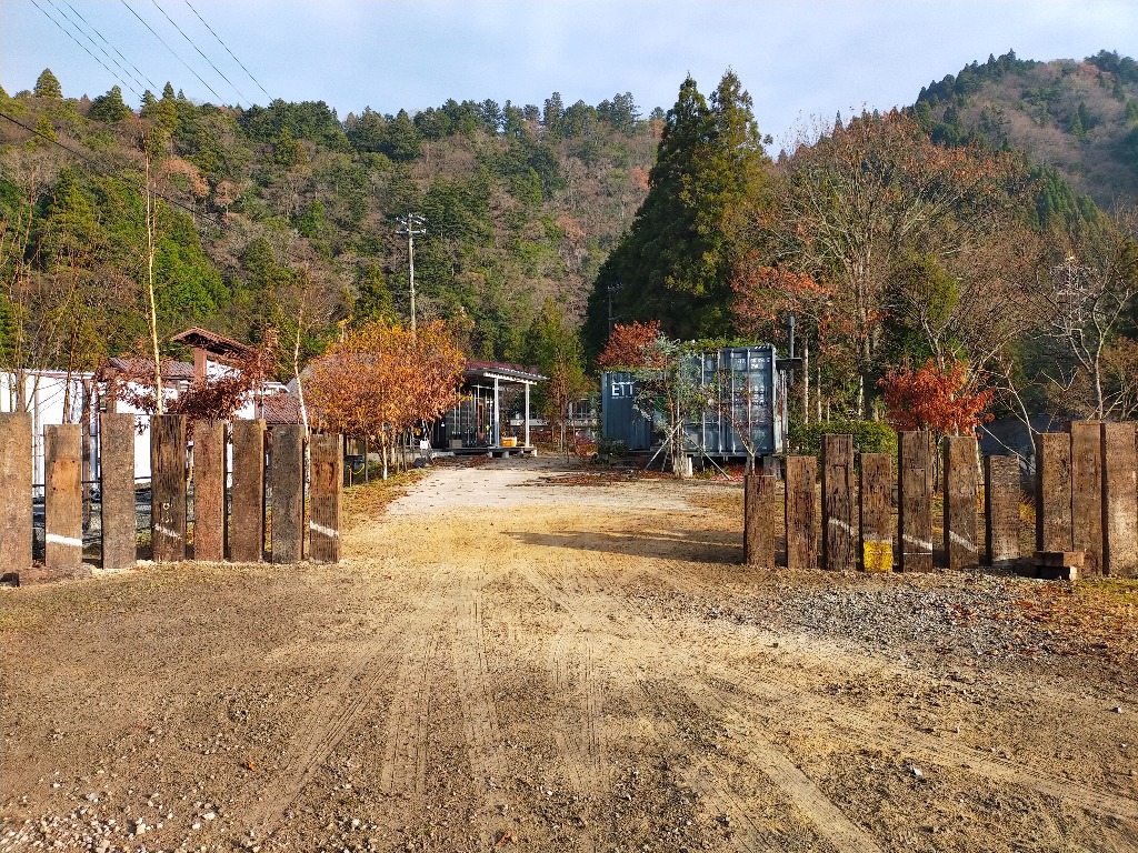 今年は、入口に門を設置し、お店らしくしました。以前は隣の道の駅「奥永源寺渓流の里」からも何をやってるところって、よく聞かれました。今回の枕木の門には「薪窯ピッツアとキャンプ場」がわかるように看板も設置して、オシャレな感じに仕上がればと考えています。